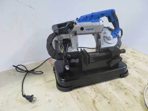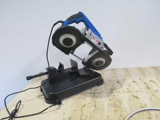 Portable and removable metal band saw HBM 1100 Watt This mobile band saw can also be used without a stand. Special features The powerful mobile band saw machine with 1100 watt motor can also be used separately for materials up to 127 x 127 mm. Includes 2 saw blades, work table and integrated LED lighting. Saw blade length 1140 mm with adjustable variable handle. Lightweight and handy. Ideal for universal construction work, for assembly, in the workshop or for private use. Saw size 1140 x 13 x 0.65 mm. Maximum cutting capacity 127 x 127 mm Cutting speed 144 m/min. Voltage 230 volts. Motor power 1100 watts. Package sizes 50 x 30 x 39 cm. Weight 15 kg. Condition: never used / new (5)