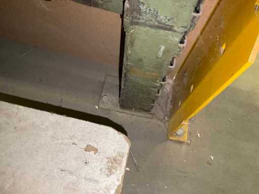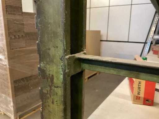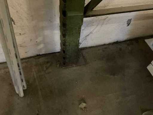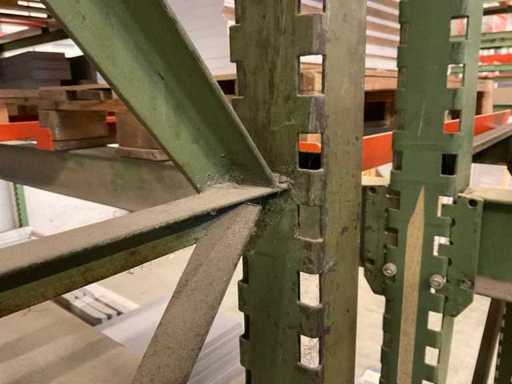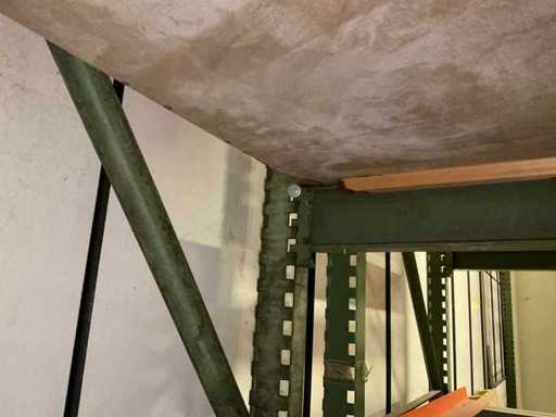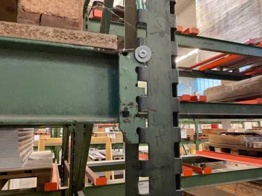 Heavy-duty shelf consisting of: 2 stands approx. 1140x2600mm, 4 trusses approx. 4000mm, with contents