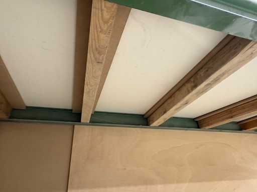 * Material floor: MDF / chipboard, white coated (partially detached)