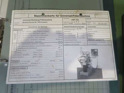 HERMLE UWF 700 Tool Milling Machine - Universal