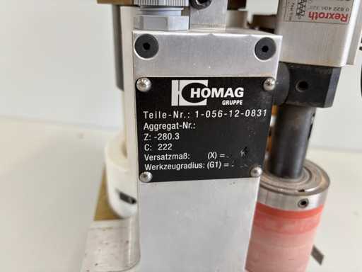 Part No. 1-056-12-0831, edge height approx. 16 - 45 mm, edge thickness approx. 0.4 - 2 mm, glue cartridge, unit swivel via C-axis, HSK 63F mount (The article is in its condition as it is and unchecked. The dismantling and loading costs are binding! The item is sold without content / material!)
