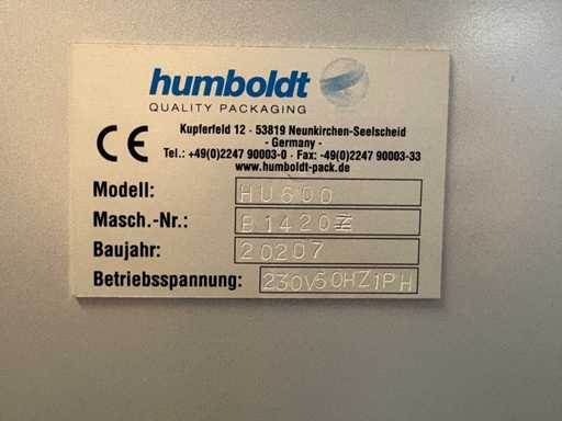 * Manufacturer: Humboldt Verpackungstechnik (Germany)