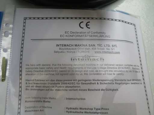 INTEMACH HD 200 - 1500 Workshop press - hydraulic