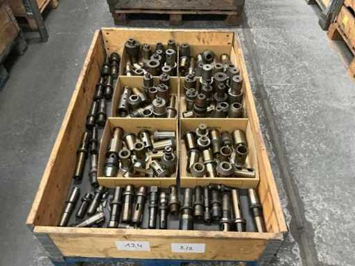 Including: collet, tap bus, weldon and drill holders/ pallet box with sorting board NOT INCLUDED/ including various accessories, attachments, extensions and reductions stacked and including pallet box