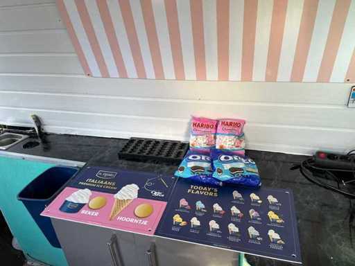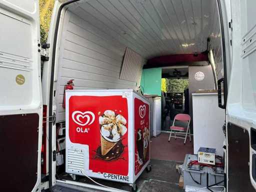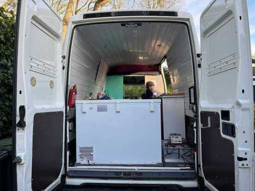 Fully equipped ice cream sales truck with broadcasting melody built and sales hatch. Self-sufficient with 230V, sockets, inverter and chargers in the back. Iveco daily automatic from 2007 with 237,000 km and MOT until May 2026. Equipped with double freezer, completely filled with ice cream, ice cream cups, ice tongs, mobile ATM and flyers. Immediately started as soon as the sun starts to shine. Technically in order with 2 separate freezers, can also be used to store ice cream at home. Neat and tidy bus, VAT deductible.