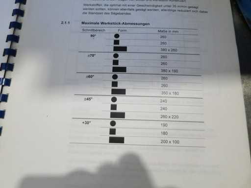 Cutting range at 90 degrees: flat 380 x 260 mm
