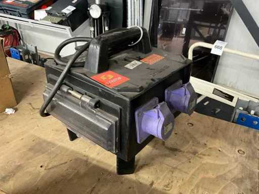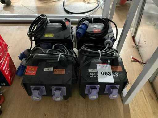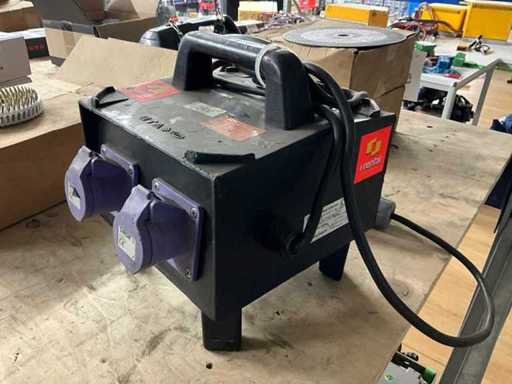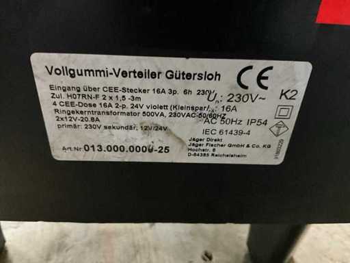 Power distributor / transformer distributor, rubber version, 230 V, equipped with CEE 16A input and 4x 24 V outputs, with toroidal transformer 500 VA, protection class IP54.