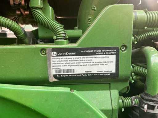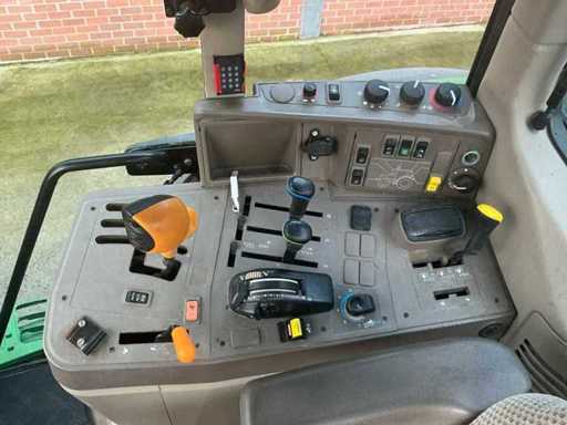 Equipped with: K80 clutch, 7-pin plug, work lights, radio, air suspension seat, 2x double-acting hydraulic valve rear, power beyond (load-sensing), air conditioning, PowerQuad Plus transmission (powershift), JD 6-cylinder 6.8L turbo-diesel engine (150HP + 25HP boost), hydraulically suspended front axle, K80 drawbar, pitonfix pull-under bar, top link, Dutch license plate registration,