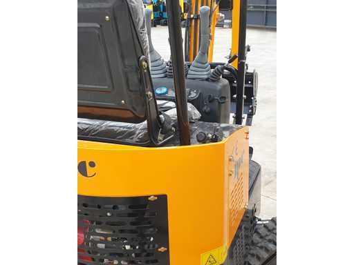 Mini crawler excavator, complete with digging bucket, electronic ignition, rubber tracks, 360-degree continuous rotation fifth wheel, hitch and control for hammer. Never used 0 hours