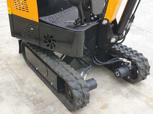 Mini crawler excavator, complete with digging bucket, electronic ignition, rubber tracks, 360-degree continuous rotation fifth wheel, hitch and control for hammer. Never used 0 hours