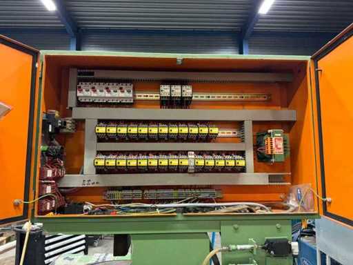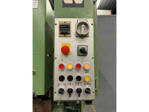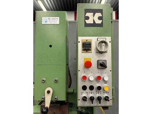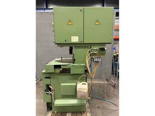 Circular saw machine KALTENBACH for Aluminum and non-ferrous metals Model: SKL 400 H Continuous diameter: Ø 400 mm Cut area 90° Round material: 130 mm Square material: 120 mm Knit profile: 315 x 40 mm 45° Profile lying: 220 x 60 mm Profile stehend: 80 x 120 mm Cutting speeds for HSS and HM stool sheets: 1300 / 3000 m/min For HM-Sägeblätter: 1750 / 3500 m/min Brake motor 1430 / 2880 n: 3.7 / 4.5 kW Saglatt Advance speed stufenloos adjustable: 0 -1100 mm/min Slope of the Sägeblattes: 3000 mm/min Machine weight: 650 kg Dimensions W x D x H: 1000 x 1300 x 1950 mm