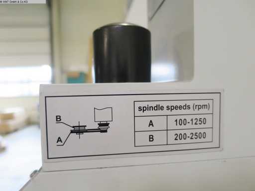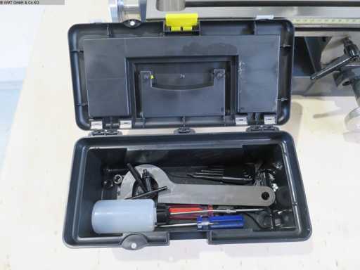 Facilities Two-stage gearbox via flat belt!! (no longer plastic gears) Infinitely variable speed range Quill fine feed via switchable handwheel Digital quill depth display Right-left rotation Robust dovetail guides with adjustable wedge strips Bellows covers for the guideways Adjustable control panel Chip protection with safety circuit Machine base optional. Drilling capacity in steel 25 mm Projection 185 mm Drilling stroke 50 mm Spindle mount MK 3 Spindle speeds: 50 - 2500 rpm Table adjustment transverse 178 mm Table adjustment longitudinal 480 mm Table clamping area 700 x 180 mm Connection voltage 230 V Total power requirement 0.75 kW Machine weight approx. 160 kg Space requirement approx. 0.75 x 0.8 x 0.9 m Condition: never used / new (5)