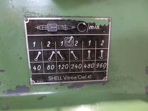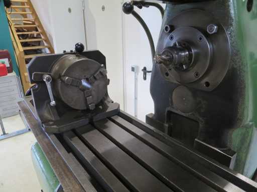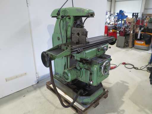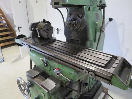 Horizontal milling machine - Incl. partial table x-travel 780 mm y-travel 220 mm z-travel 410 mm Table length 1100 mm Table width 270 mm Spindle speeds 40 - 960 rpm Spindle holder SK 40 Total power requirement kW Machine weight approx. 1.7 t Space requirements approx. 1.8 x 1.6 x 1.8 m Condition: unchecked (6)