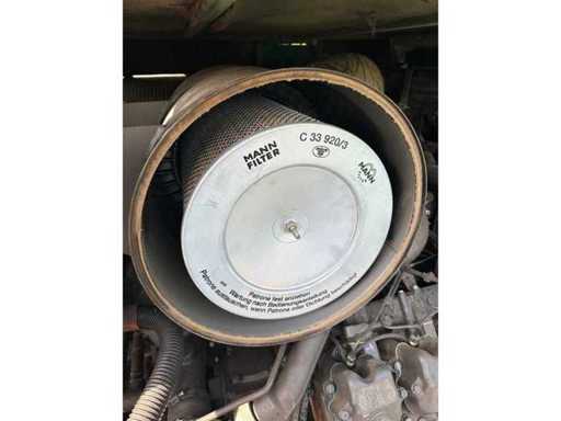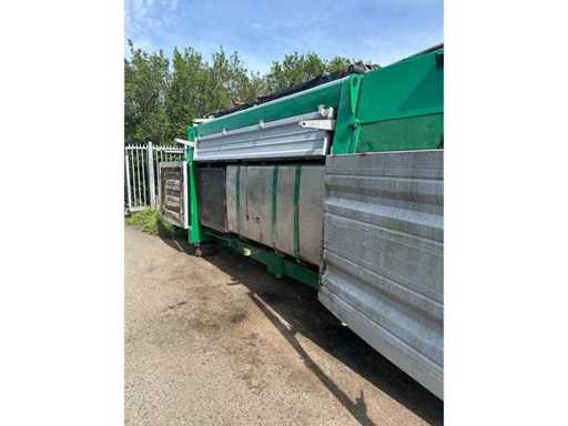 The Komptech Crambo 5000 shredder is in working condition and was overhauled in 2009, with a new Mercedes-Benz engine fitted. The Mercedes-Benz V8 engine delivers 435 hp / 320 kW and has 2 turbochargers, making the machine more economical and powerful. The shredder is classified as mobile because it has a sled that can be easily moved or transported with a towing arm system. The number of operating hours of the engine is 3700 hours. The machine comes with documentation about the inspections and the history of the shredder. In addition, the schematics of all parts in the shredder and the manual of the motor are included. The shredder is equipped with a remote control.