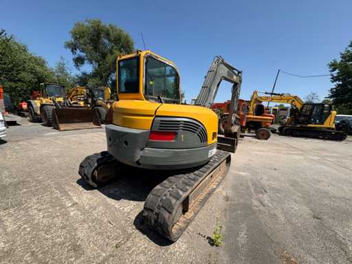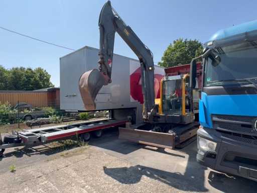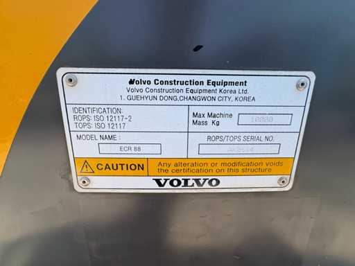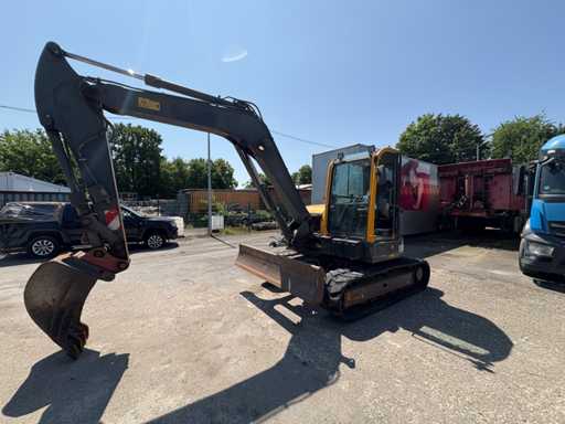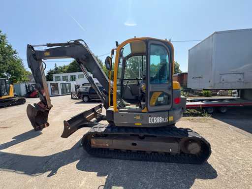For sale is a well-maintained Volvo ECR88 Plus compact excavator with short tail, built in 2008, and only 6,188 operating hours. The excavator is immediately ready for use. Thanks to its small rear swing radius, it is perfect for confined construction sites or inner-city applications.
