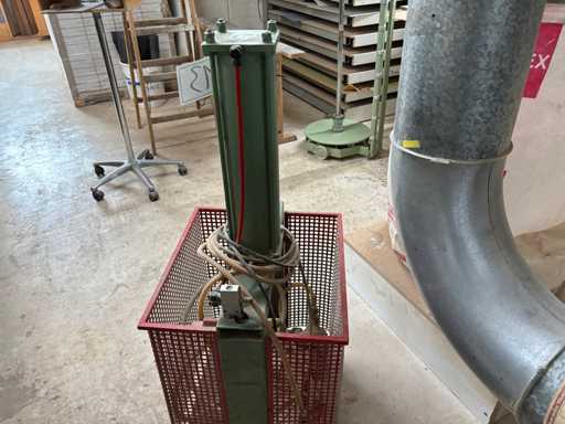 Pneumatic, press surface approx. 340 x 260 mm, height approx. 360 mm (The article is in condition as existing and unchecked. The dismantling and loading costs are binding! The item is sold without content / material!)