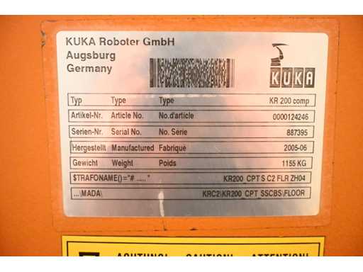 KUKA KR 200 COMP Kuka Industrial Robot KR 200 comp ( 124246 ) + (V)KRC2 ed05 + Panel 00-130-547