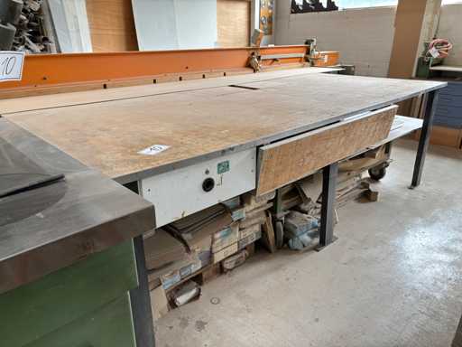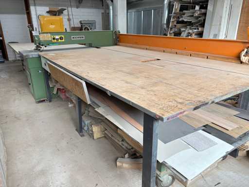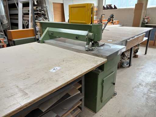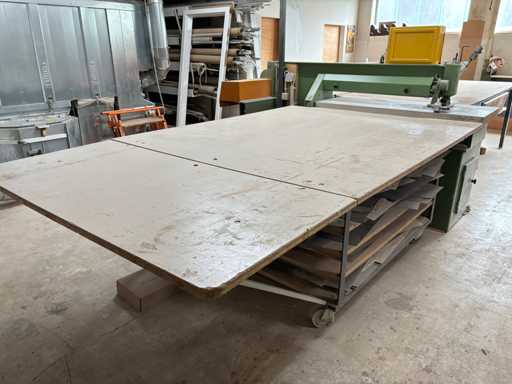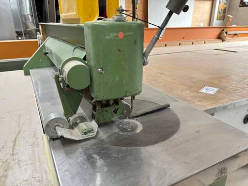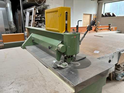 Machine No. 29098163, outlet width max. approx. 1150 mm, table front length approx. 3300 mm, table rear length approx. 2880 mm (The article is in condition as existing and unchecked. The dismantling and loading costs are binding! The item is sold without content / material!)