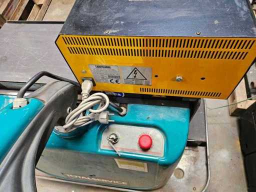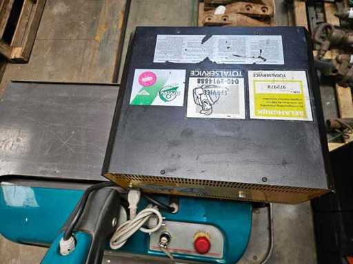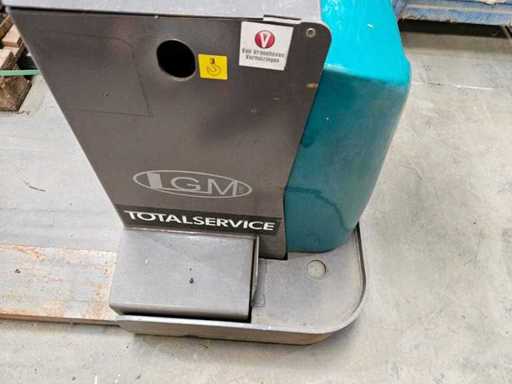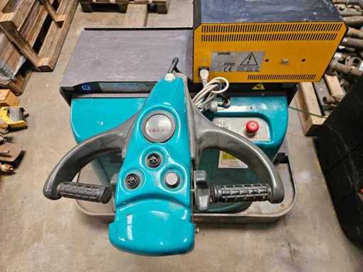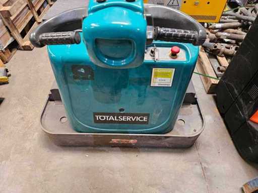 Electric pallet truck designed for material handling operations in industrial environments. The unit offers a load capacity of up to 3000 kg and is suitable for warehouse and logistics applications.