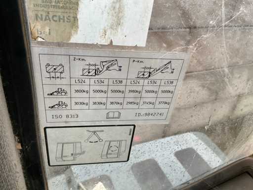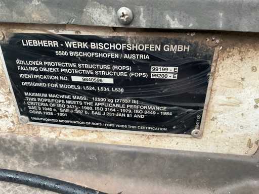 Travel speed: 20 km/h, turning radius outside: 5.7 m, tipping load articulated: 6,470 - 7,500 kg, bucket capacity: 1.70 - 5.50 m³, operating weight: 10,400 - 12,200 kg, including: crocodile pliers, engine Liebherr, number: 877095.