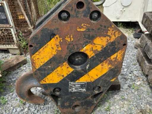 For sale is a used hook bottle from the manufacturer Liebherr with a load capacity of 40 tons. Version with single hook and one sheave – ideal for crane operation with a rope diameter of 25 mm.