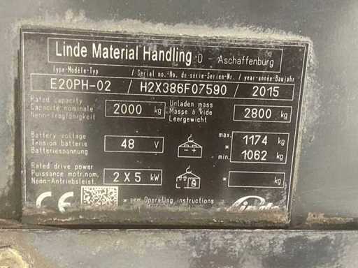 Linde - 2015 - E20PH-02 - 6.07M Plywood, Free-Lift, Side-Shift - Forklift