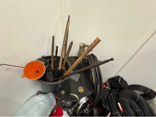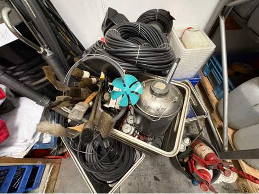 Various workshop utensils (funnels, brushes, brushes, filters)