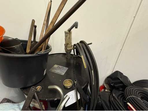 Workshop post with oil drum (approx. 200 L) incl. hand pump