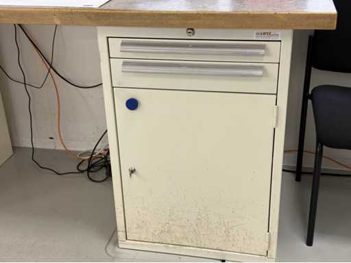 Width approx: 2000 , Manufacturer: Lutz , equipped with vice , Attention all viewing contents in the drawers or on the workbench are not included in the scope of delivery