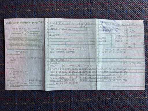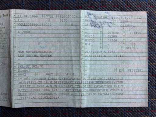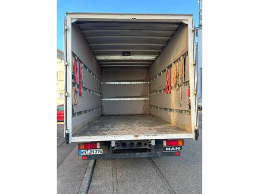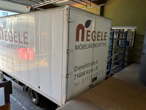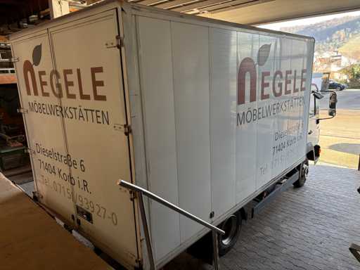 Vehicle Identification No. WMAL335590G139020, displacement approx. 4580 cm³, power approx. 114 KW, empty mass approx. 4230 kg, total weight approx. 7490 kg, box LxWxH approx. 4300 x 2350 x 2300 mm and inside felt and lashing strips 3-row, sticker green, rear tyres as good as new! (The article is in condition as it is and unchecked. The dismantling and loading costs are binding and the item is sold without contents/material!)