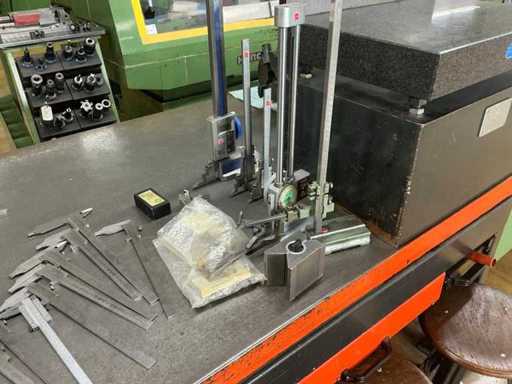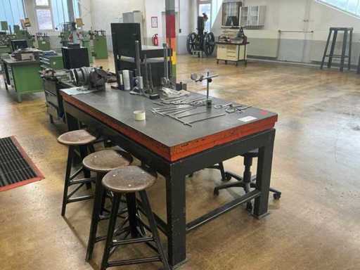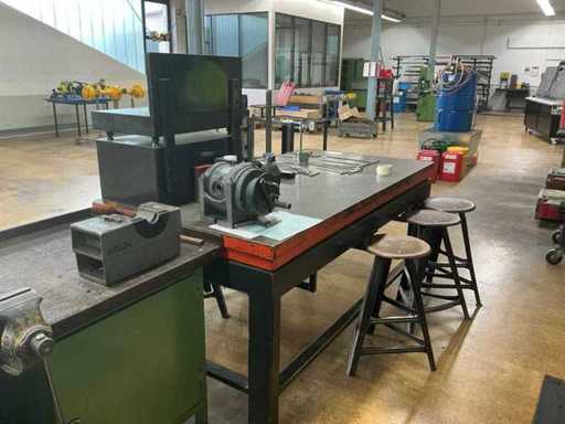 With contents, incl. 7 seat stools, thickness of the steel plate 110 mm, various measuring equipment, NOVALITH granite measuring or drawing plate and WALTER parts apparatus not included in the scope