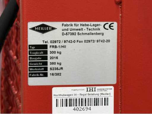 Load capacity: 300kg; for more details see photo of the nameplate;