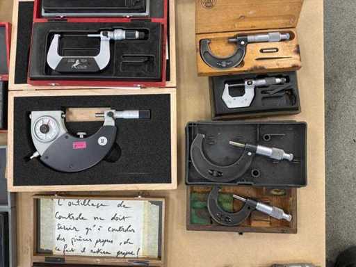 Various micrometers of different brands and sizes.