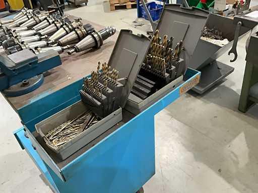 - Includes cutters and drill bits of different diameters in cases and organizers