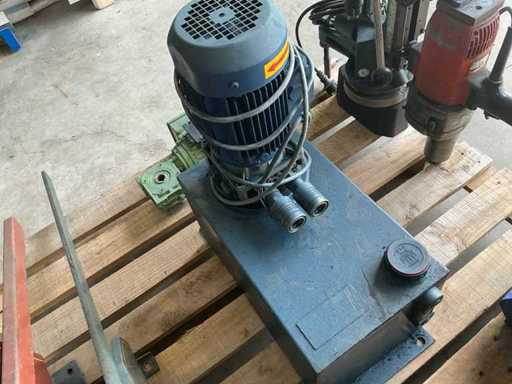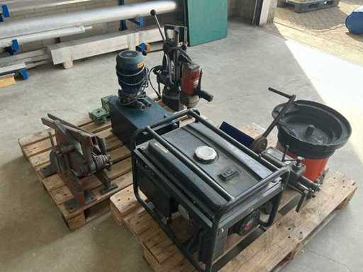 Equipped with: drill press, sawing machine, generator (operation unknown), hydraulic pump, electric motor