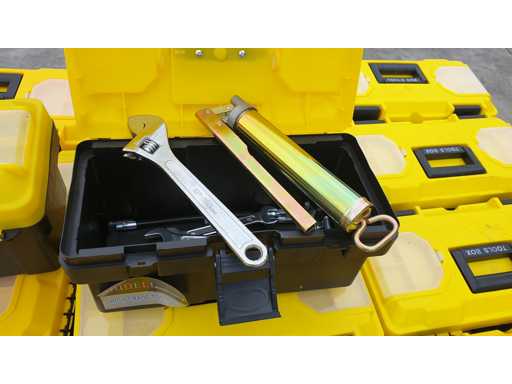 Batch of miscellaneous equipment, consisting of 30 plastic crates with contents