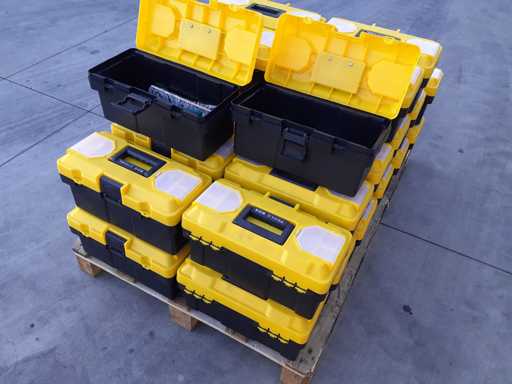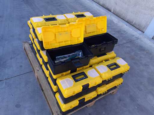 Batch of miscellaneous equipment, consisting of 30 plastic crates with contents