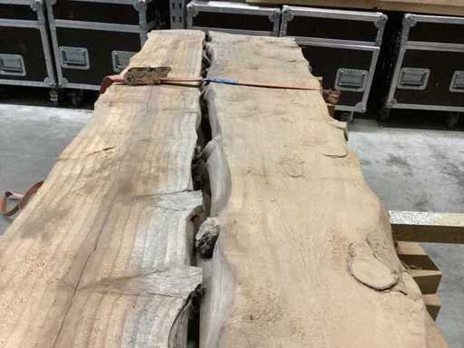 Mixed lot of block goods / "sequoia" (unknown tree) / 1.80m long / diameter approx. 50cm / sawn into 6cm / 7 planks / dry air-dried