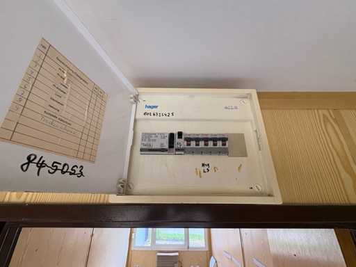 It is divided into two separate rooms with an access door, several sockets, light installation and electrical distribution via a fuse box (Hager). A combination of electric and gas heating ensures a demand-based heat supply. The window surfaces are made of plastic with insulating glazing, one large window is located at the front, two narrow ones at the long side.
