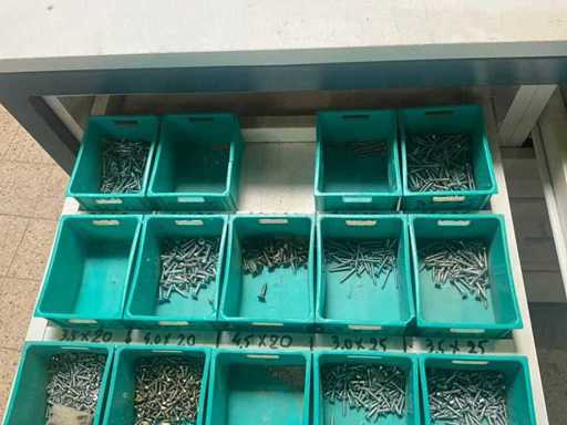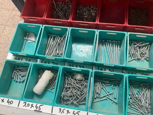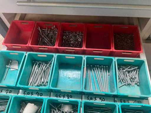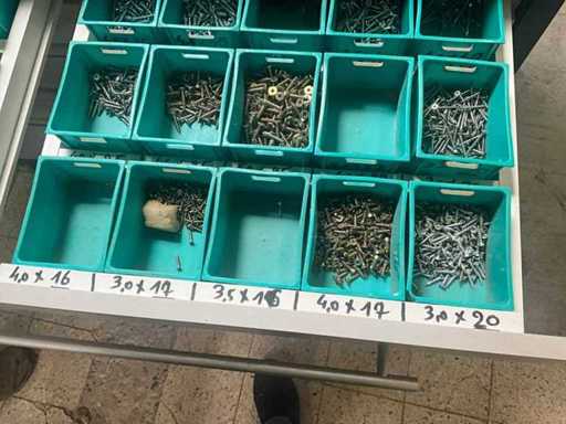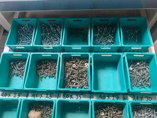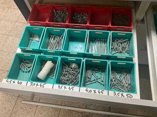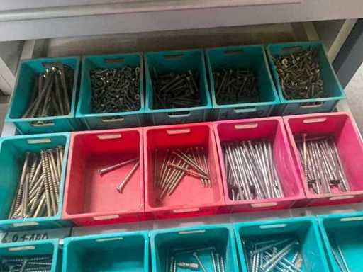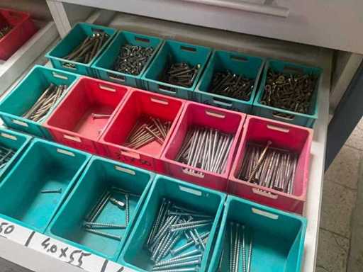 Being batch of various fasteners including various screws, screws. Equipped with 6 drawers including PVC storage trays.