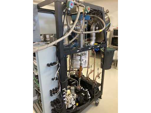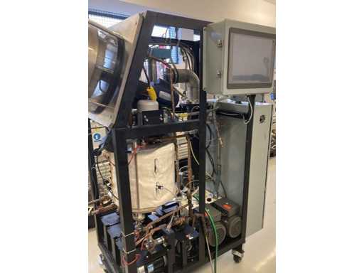 purchased in 2020, upgraded in 2021 (replaced the glass traps with stainless steel and providing additional isolation for the traps), comes with an electrical transformer which makes it compliant both for North America and Europe. In perfect condition, used only for demonstrative purposes with a work time of less than 500 hours. Processes up to 80 lbs (35 kilogram) per hour depending on process conditions.