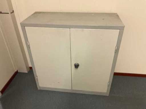 Includes: (1x) work table 200x100x77cm, (1x) 2-door cabinet 97x40x97cm.