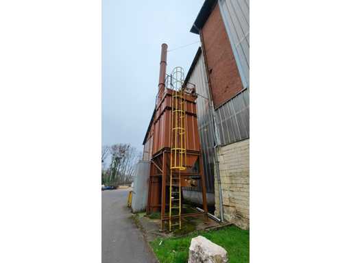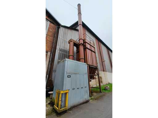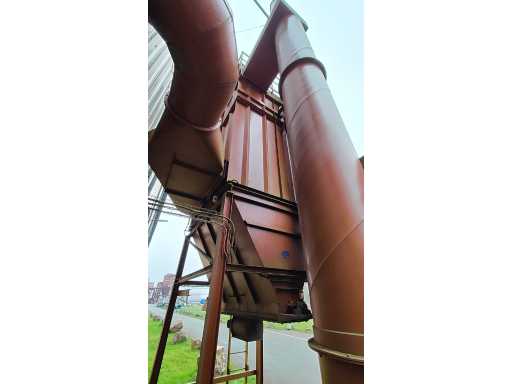 Additional remarks: Pneumatic cleaning at 6 bar • Double-leaf valve under filtration, material flow rate 200 l/h • For dust and chips, dry products • Material temperature range: -20°C to 100°C • Ambient temperature: -10°C to 50°C • Air flow: 20,000 m³/h • Static pressure in filters: 380 mmCE (~3.72 kPa) • 109 filter bags, D130 mm x 3300 mm • Non-ATEX • This type of machine is used in industrial environments to collect dust and particles generated by processes such as machining, sanding or cutting."