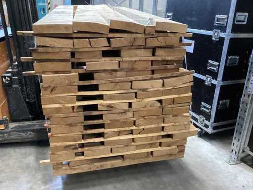 approx. 2.4m3 approx /approx. 55 pieces / extra rustic quality Oak extra rustic planed / boards edged on 4 sides / 2.60m long / max width board 23cm / thickness board 52mm / dry air-dried