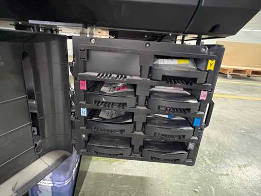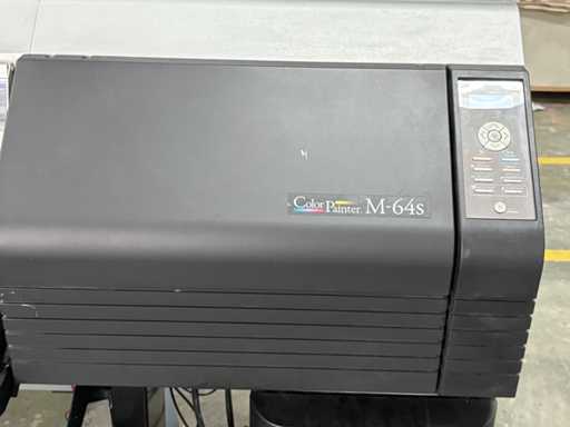For sale is an OKI ColorPainter M-64s professional large format printer, model IP-6620-00, with a print width of up to 1616 mm.The device is equipped with a 7-color system (CMYK + Lc + Lm + Gray) and is suitable for high-quality outdoor and indoor digital printing.