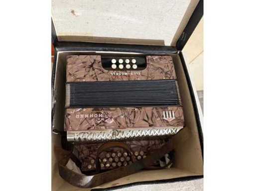 Old accordion Original Hohner Club model Victoria DRP B/Eb, marbled