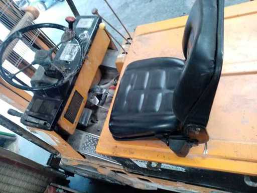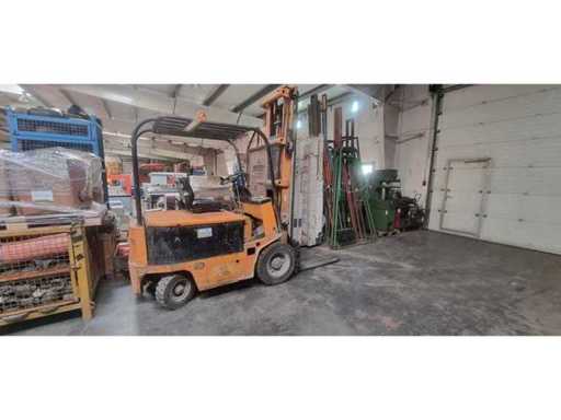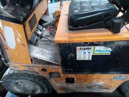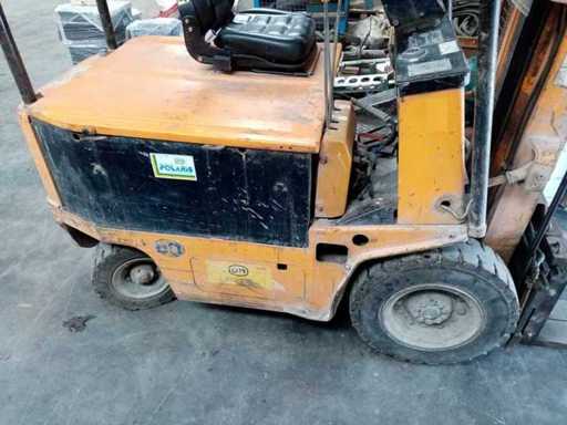 Electric forklift OM E20B designed for material handling operations in warehouses and industrial environments. The unit offers a lifting capacity of 1600 kg and a lifting height of up to 4500 mm, suitable for stacking and transport tasks.