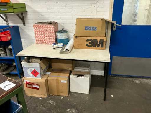 Double-sided constructed table, paper, plastic, wokkels, foil, boxes and miscellaneous