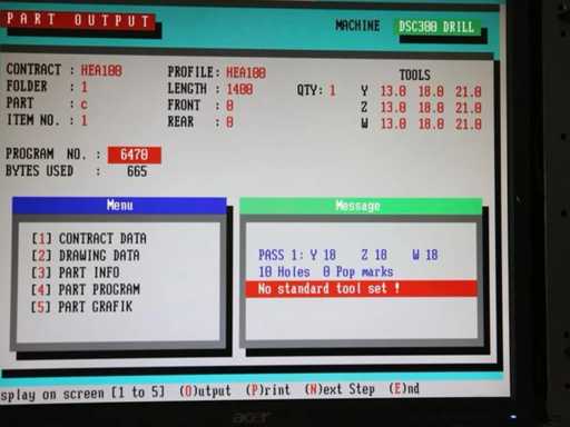 Siemens control panel with digital input of hole patterns and parts lists