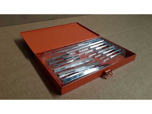 Kit consisting of 8 pin punches, 2 awls and 4 mason's